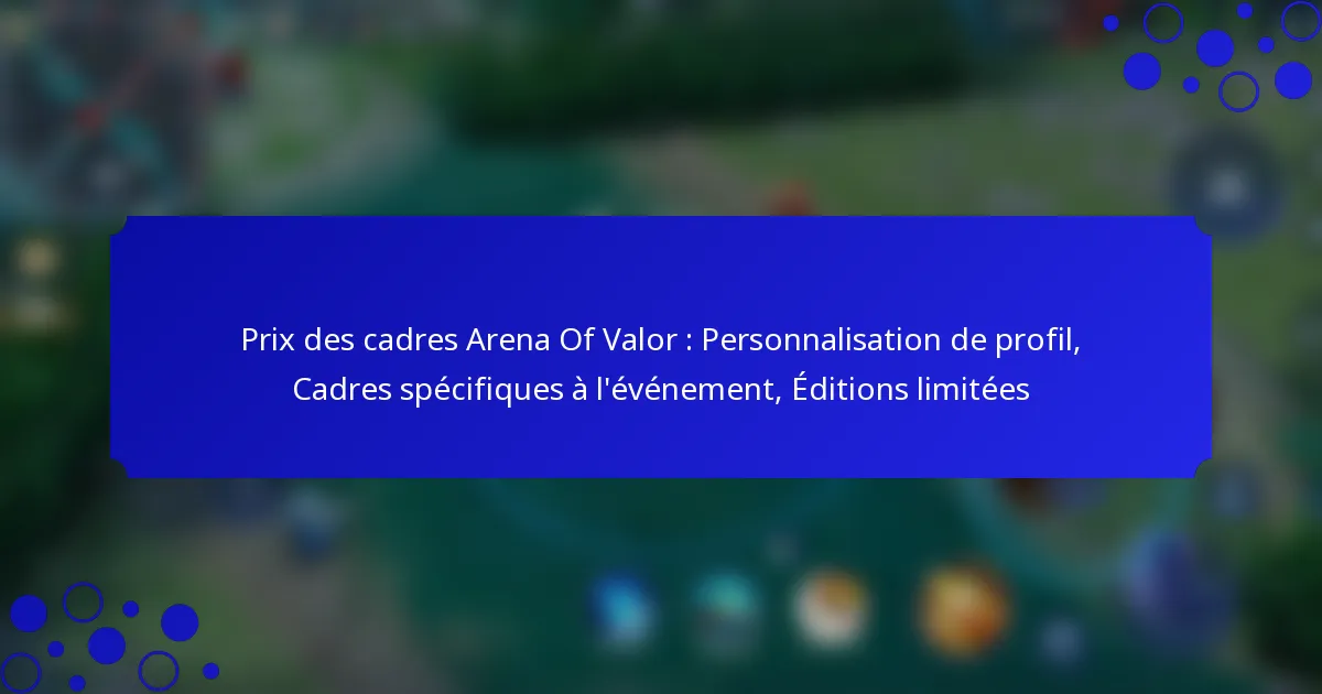 Prix des cadres Arena Of Valor : Personnalisation de profil, Cadres spécifiques à l’événement, Éditions limitées