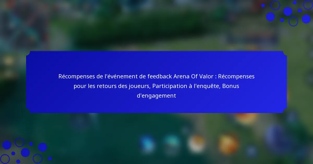 Récompenses de l’événement de feedback Arena Of Valor : Récompenses pour les retours des joueurs, Participation à l’enquête, Bonus d’engagement
